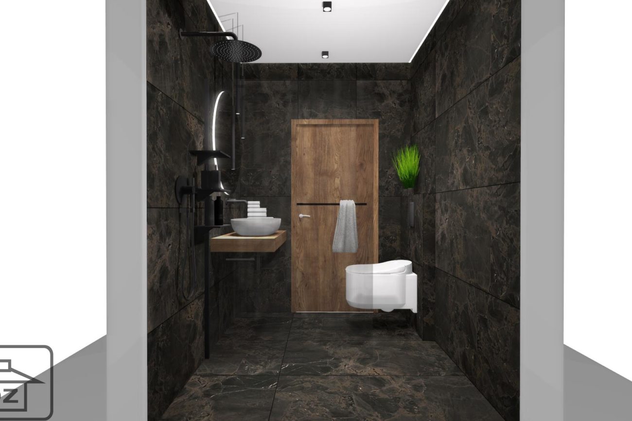 Aranżujesz małą łazienkę i liczysz się z decydowaniem się na kompromisy? Dzięki tej wizualizacji przekonasz się, że nie musisz, w takiej sytuacji, rezygnować z eleganckiej czerni. Wykorzystaj zaproponowane połączenia i stwórz łazienkę, o jakiej marzysz.
