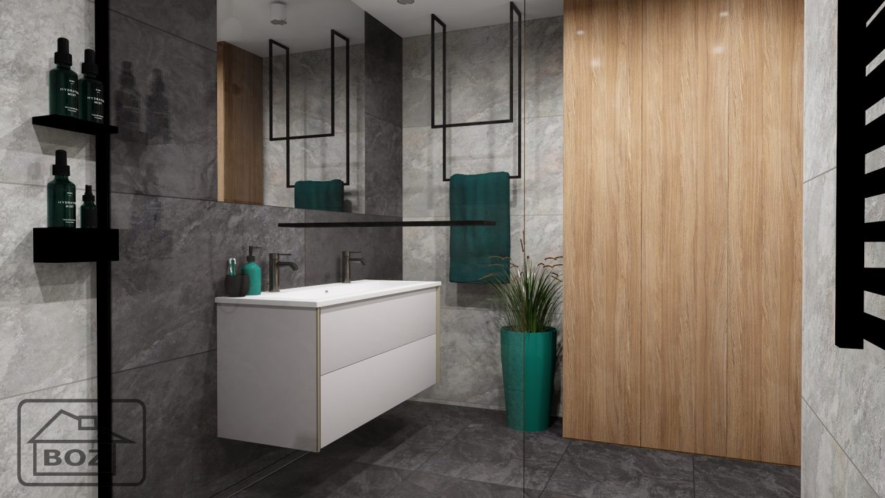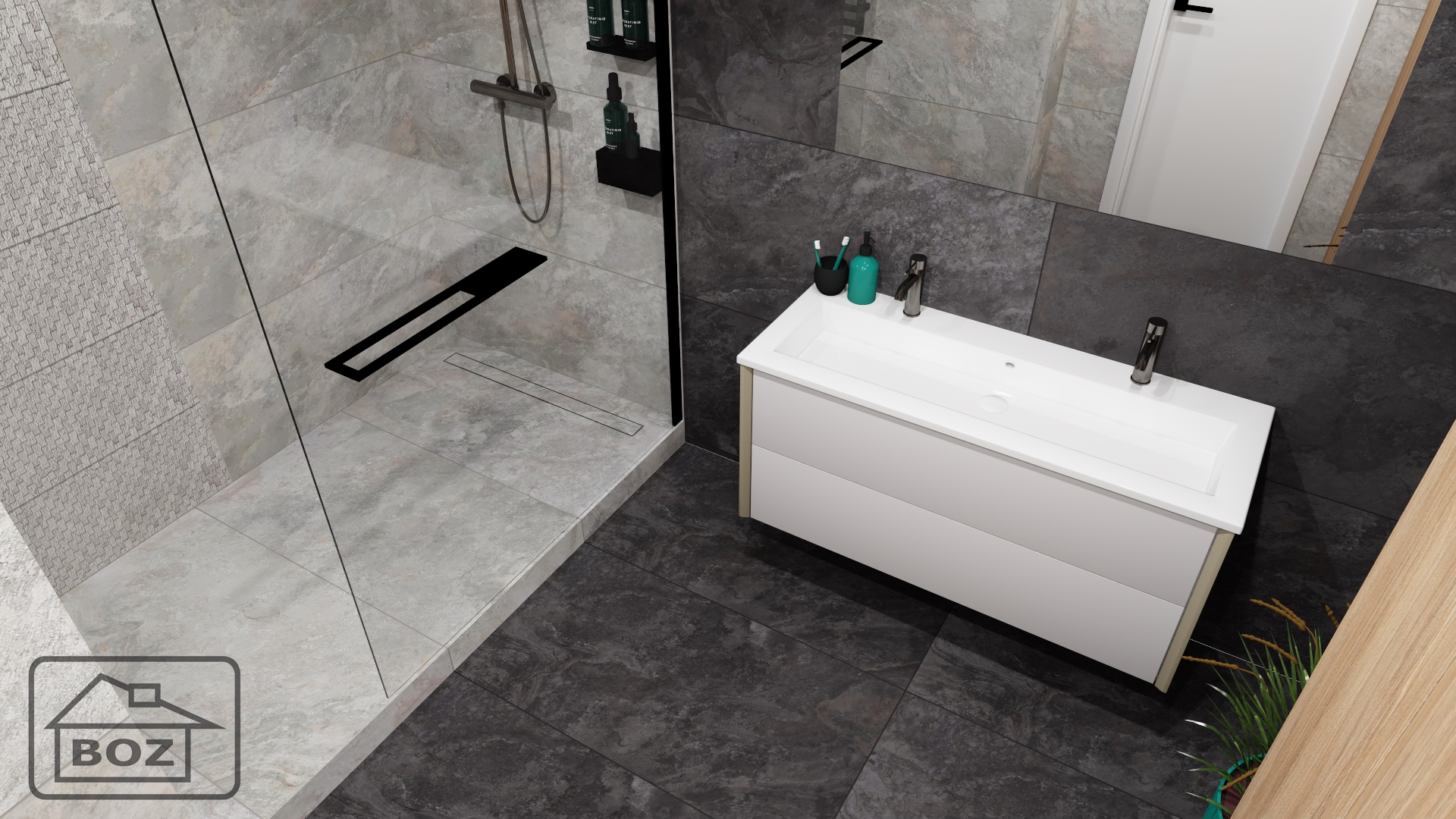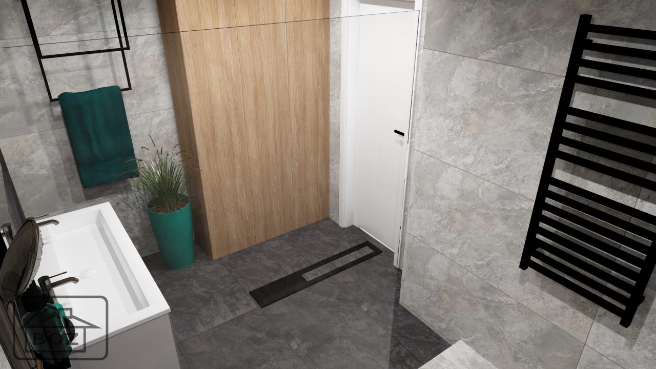 Kamienne wnętrze w nowoczesnych kolorach szarości to doskonałe rozwiązanie dla osób, które pragną stworzyć wyjątkową i elegancką przestrzeń w swojej łazience. Podest pod prysznicem pozwoli na uniknięcie tradycyjnego brodzika, jednocześnie dodając nowoczesności i funkcjonalności. Czarne akcenty nadadzą wnętrzu wyrazistości i indywidualnego charakteru. Pamiętaj również o odpowiednim oświetleniu, które podkreśli piękno kamienia i stworzy nastrojową atmosferę.