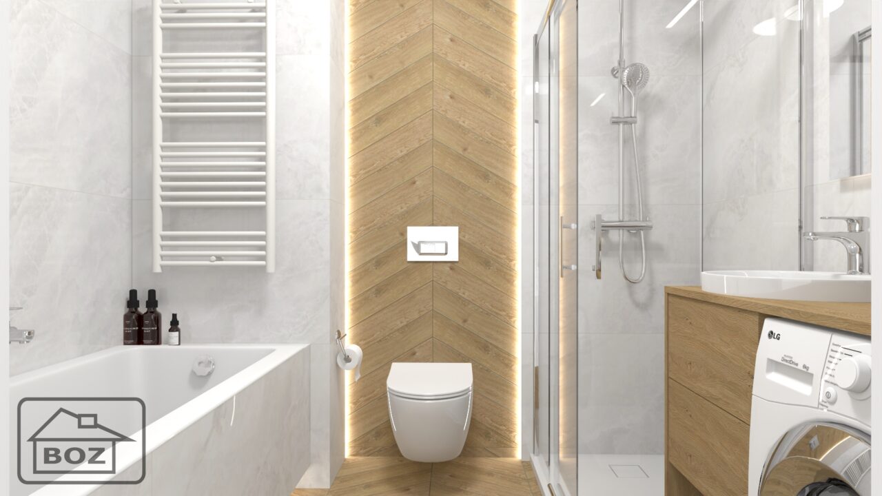 W nowoczesnych aranżacjach coraz częściej pojawiają się drewnopodobne płytki, które wprowadzają do wnętrza ciepło i naturalny klimat. W tym przypadku podkreślenie ich oświetleniem LED tworzy z nich główny element dekoracyjny łazienki. Światło wydobywa teksturę i rysunek drewna, dodając przytulności, a jednocześnie nowoczesnego charakteru. Dzięki temu nawet niewielkie wnętrze zyskuje elegancki, a zarazem naturalny wyraz, który wpisuje się w aktualne trendy łączenia natury z nowoczesnością.