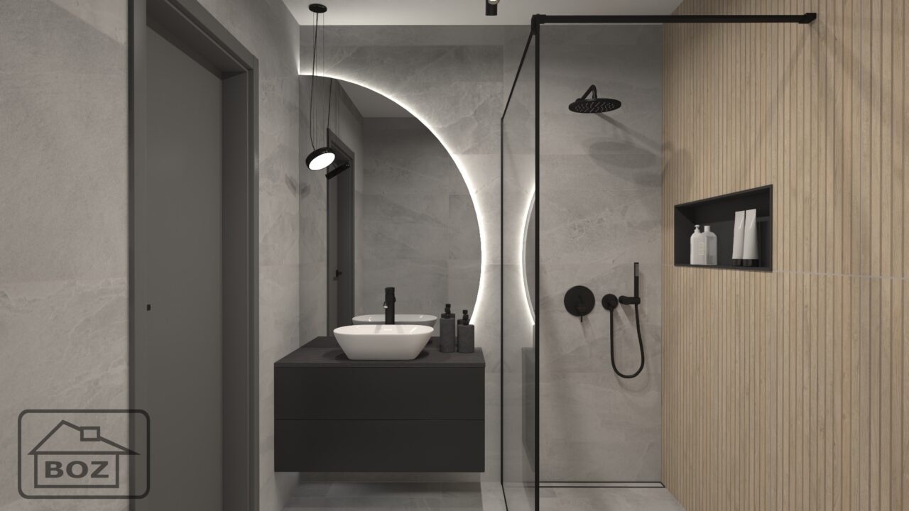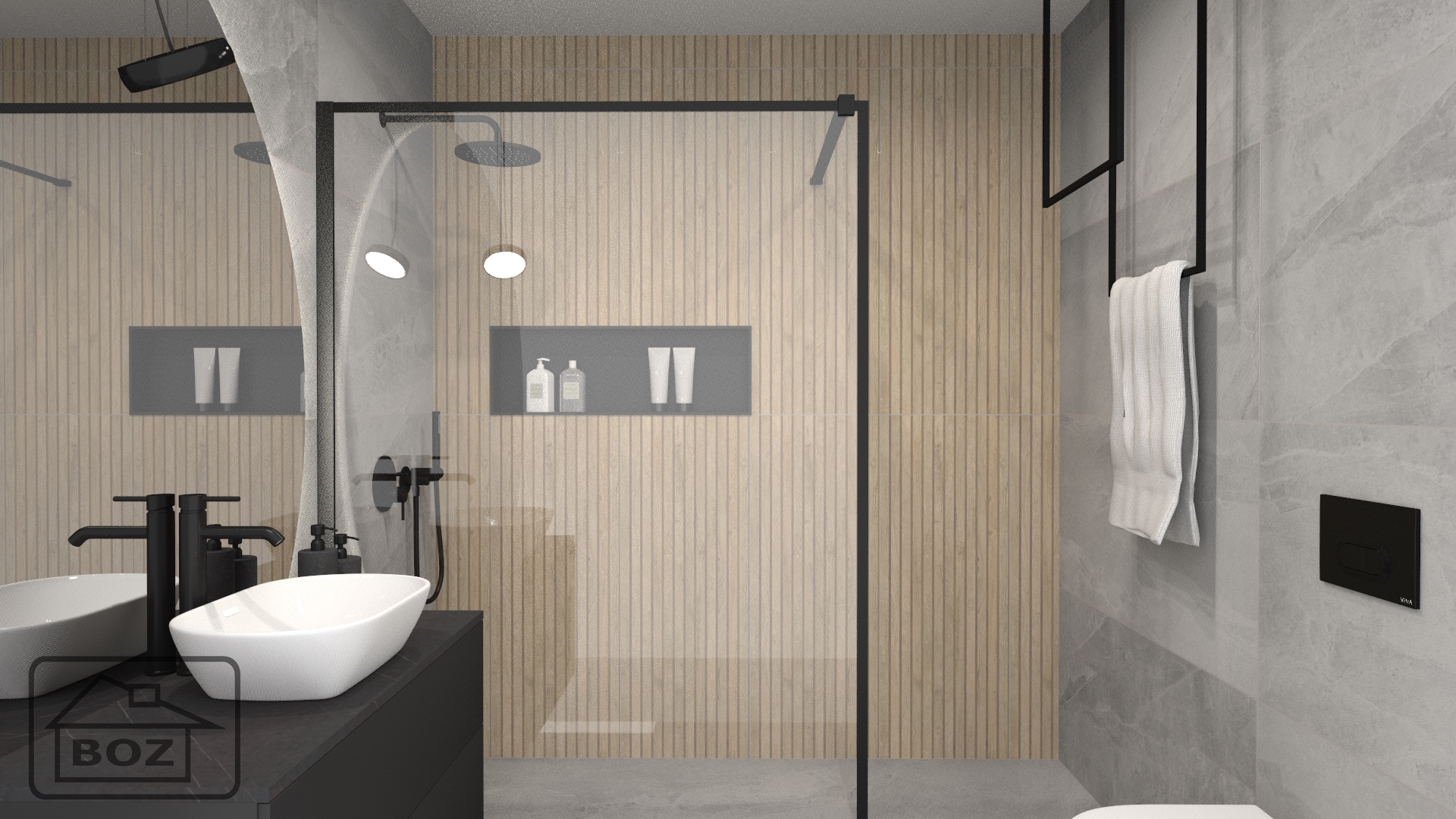 W końcu, niech te płytki imitujące kamień i drewniane lamele, razem z czarnymi dodatkami, poprowadzą nas w podróż przez świat relaksu i harmonii. Ta realizacja to idealny pomysł na łazienkę z lamelami, gdzie każdy detal ma znaczenie.