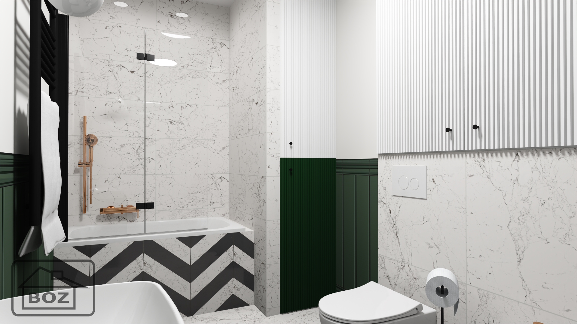 Łazienka w angielskim stylu to mieszanka elegancji, klasyki i wyjątkowości. Płytki z kolekcji Macieja Zienia, klasyczne kolory, miedziane baterie, parawan nawannowy i czarne akcenty to elementy, które nadają wnętrzu charakteru i osobowości. To aranżacja, która przeniesie Cię do klimatu angielskich rezydencji, zachwycając elegancją i wyrafinowaniem. Jeśli kochasz ten niepowtarzalny styl, to taka łazienka spełni Twoje marzenia o wyjątkowym wnętrzu.