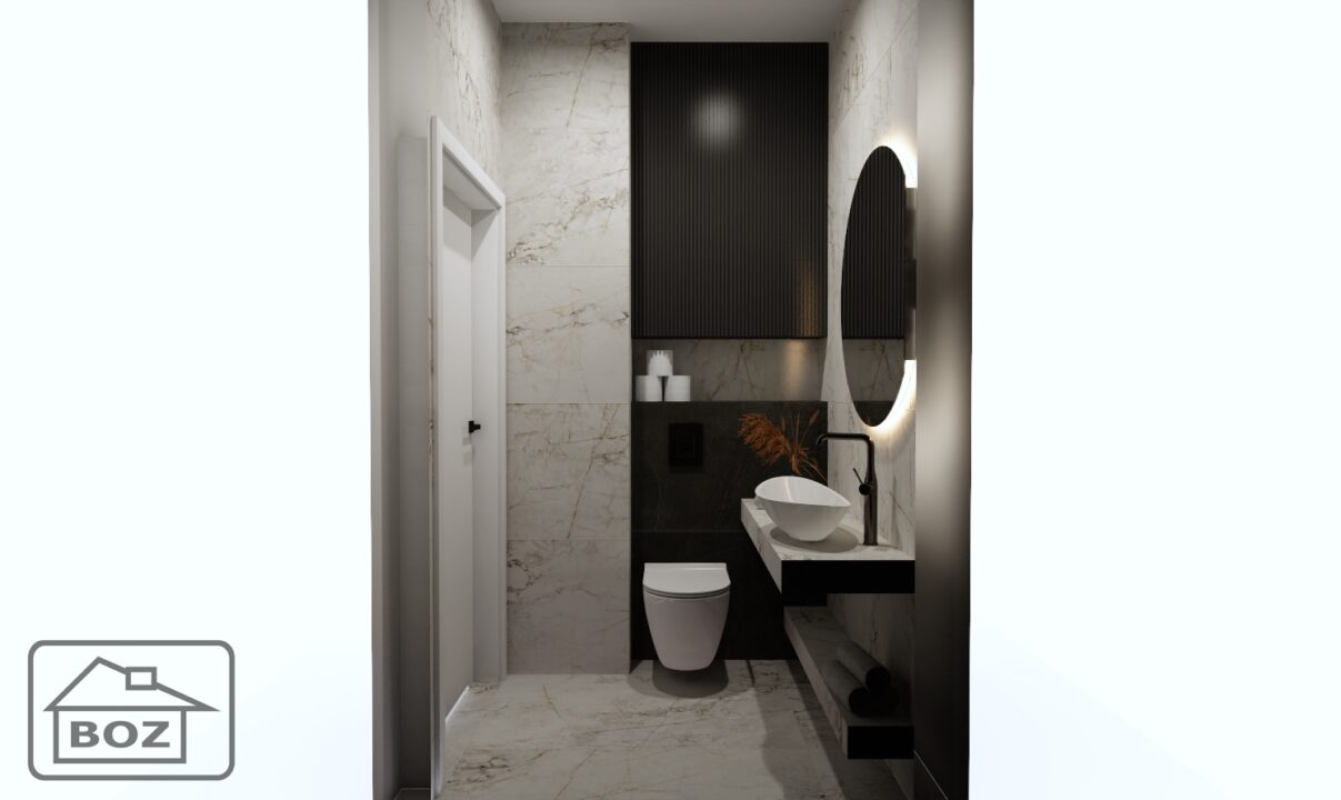 Połączenie klasycznej elegancji z nowoczesnymi akcentami, minimalistycznym blatem i praktyczną zabudową sprawia, że łazienka jest nie tylko piękna, ale i wygodna w codziennym użytkowaniu. To idealne miejsce dla osób, które cenią harmonię stylu i funkcji, nie rezygnując przy tym z elegancji i ponadczasowego charakteru.