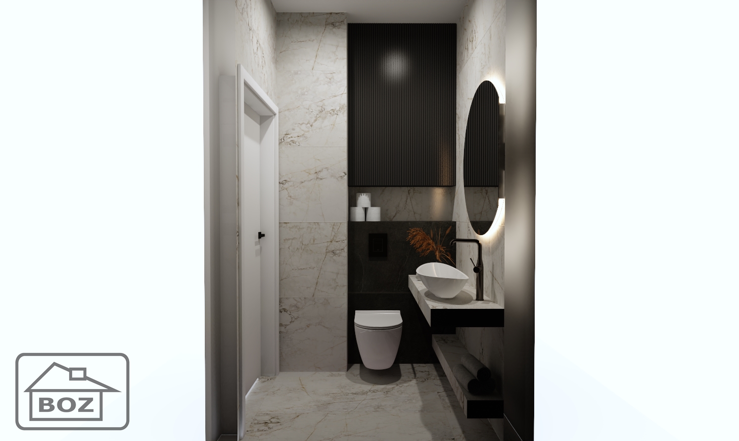 Łazienka to miejsce, w którym elegancja spotyka się z funkcjonalnością. W tej aranżacji dominuje klasyczna elegancja, której ponadczasowy charakter w połączeniu z nowoczesnymi akcentami tworzy wyjątkową przestrzeń kąpielową. Neutralna baza i przemyślane detale sprawiają, że wnętrze jest zarówno stylowe, jak i przyjazne w codziennym użytkowaniu.