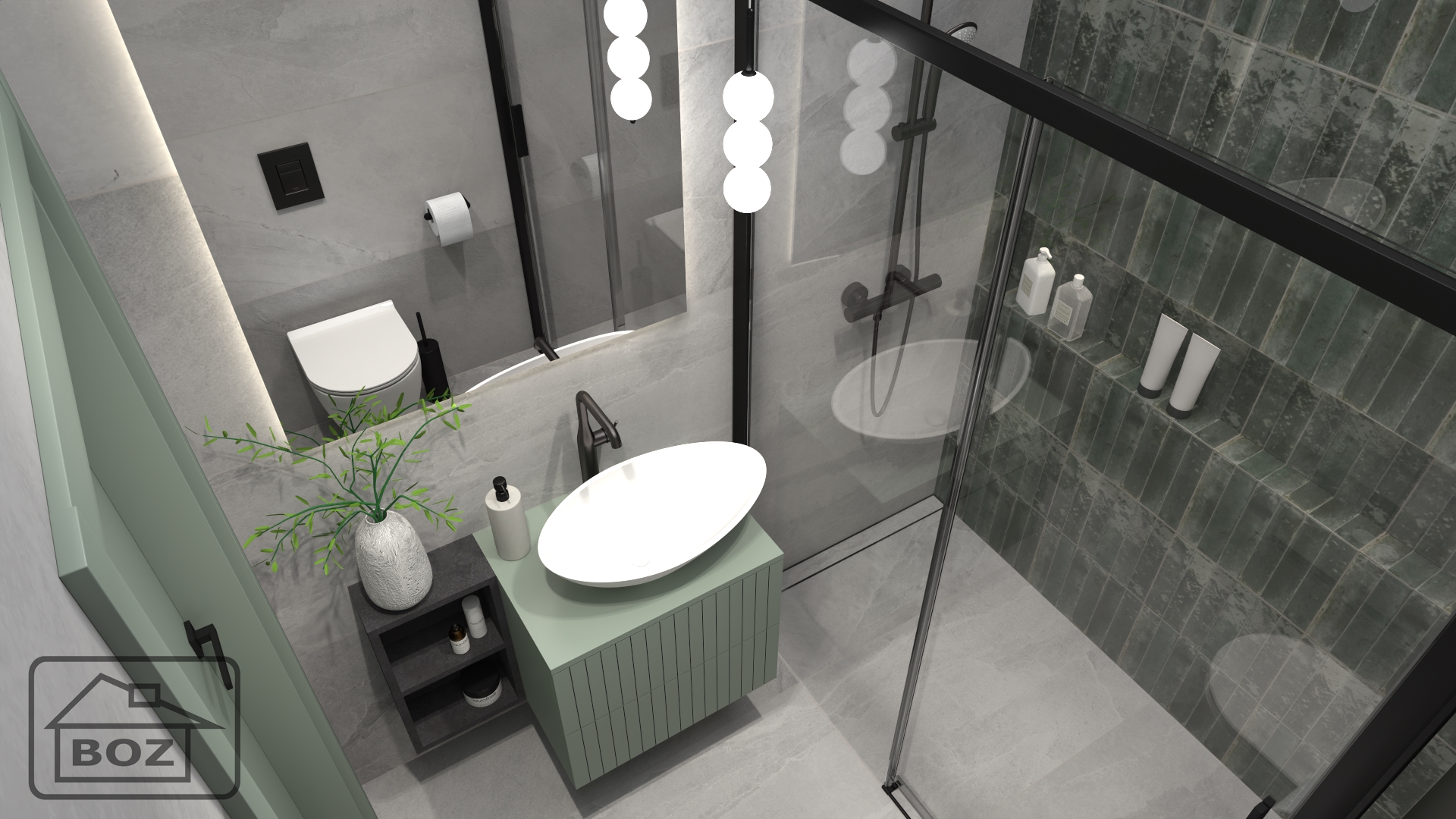 Przemyślane połączenie kolorów, faktur i detali sprawia, że łazienka inspirowana naturą staje się miejscem, które zachwyca zarówno funkcjonalnością, jak i stylem. To przestrzeń, w której surowość kamienia spotyka się z miękkością zieleni, a eleganckie detale dopełniają całość, tworząc wnętrze pełne harmonii i komfortu.