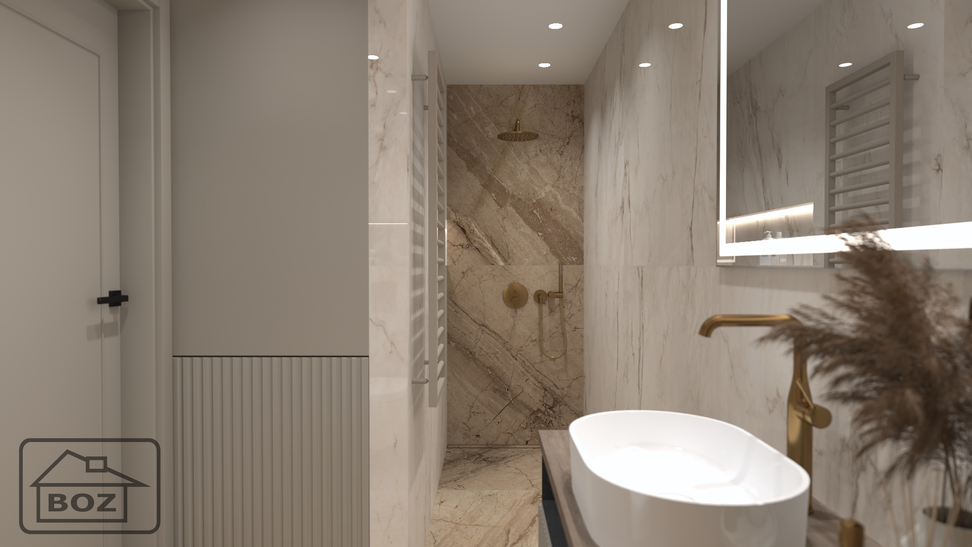 Nowoczesna łazienka to połączenie ciepłych kolorów, wiernych imitacji kamieni, wysokiego standardu wyposażenia, szczotkowanego złota, oświetlenia LED, braku brodzika i praktycznych wnęk. To przestrzeń, która nie tylko zachwyca wzrok, ale także spełnia wszelkie oczekiwania pod względem funkcjonalności i komfortu.