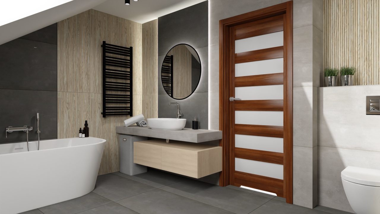 To propozycja dla tych, którzy cenią sobie prostotę, elegancję i łatwość utrzymania czystości. Szarość w połączeniu z pozostałymi akcentami tworzy harmonijną przestrzeń, w której każda chwila będzie w komfortowa i odprężająca.