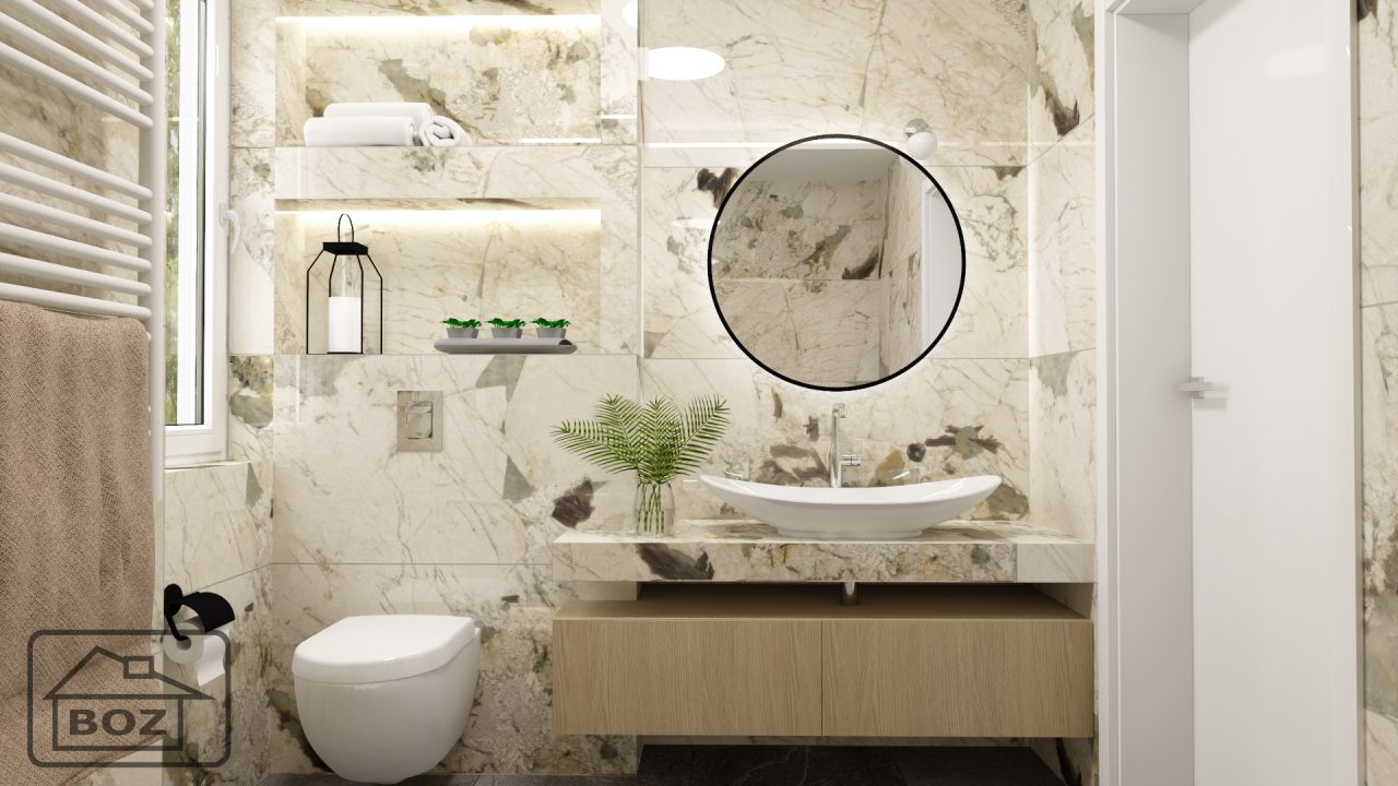 Jasne ściany i podłogi odbijają światło, nadając pomieszczeniu uczucie przestronności. W połączeniu z wykorzystaniem włoskich płytek imitujących naturalny kamień stworzymy harmonijną kompozycję, która wprowadzi do łazienki elegancję i wyrafinowany styl.